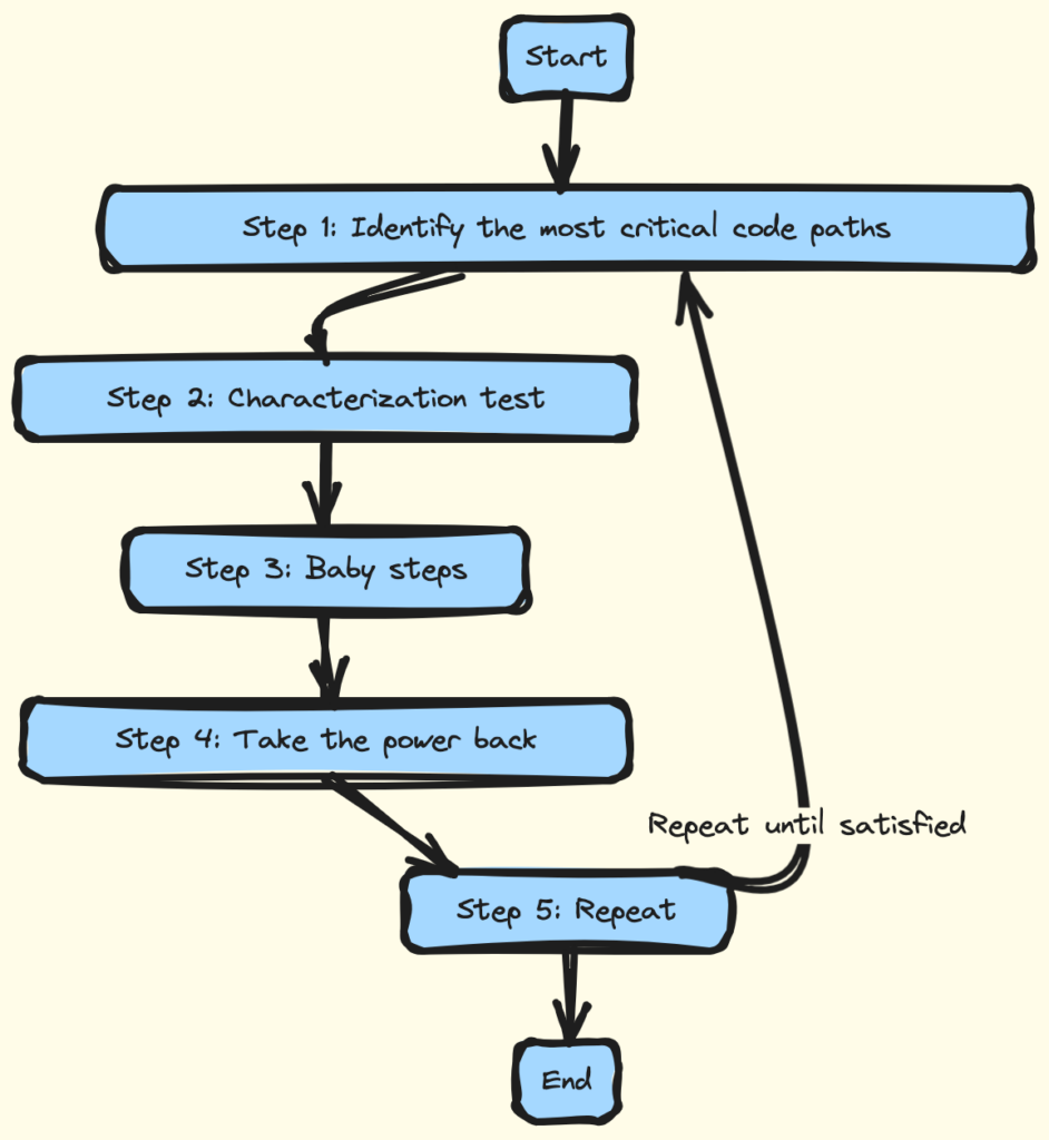 After describing the existing flow of the codebase through characterization testing, it’s time to make small changes to the production code. This is where you can start refactoring the code to make it more maintainable, testable, and performant.